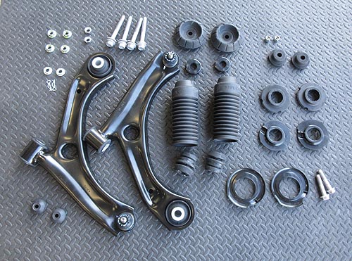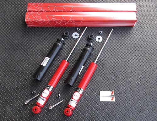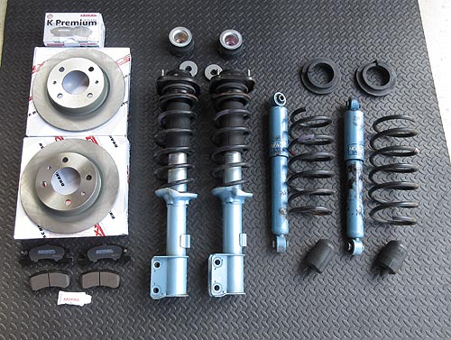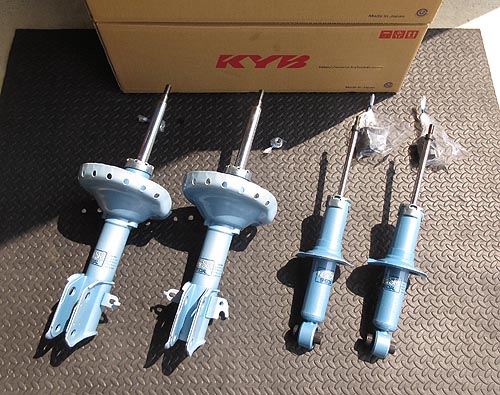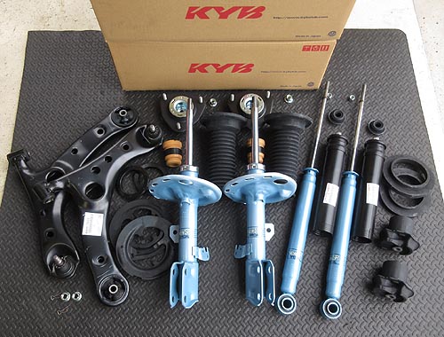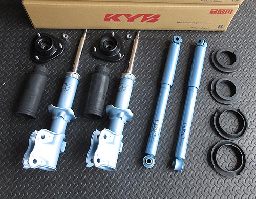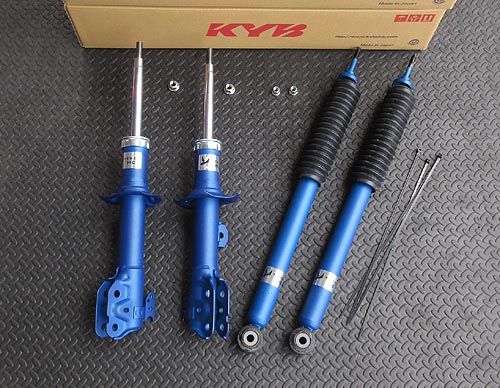 に KYB ニューSRショックを装着しました。 前後のアッパーマウント等の消耗パーツと フロントロアアーム関係のブッシュ類もご用意しました。 | |