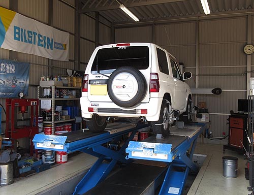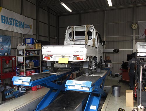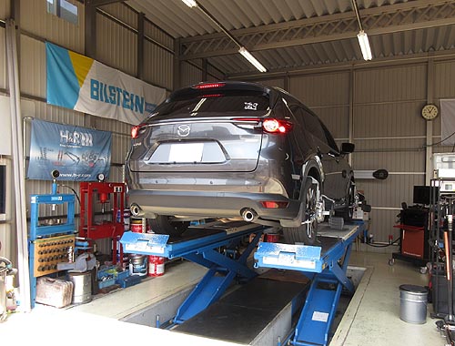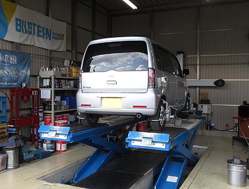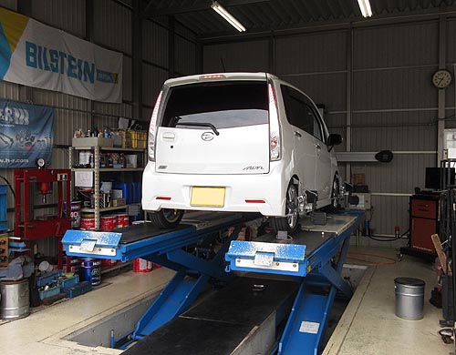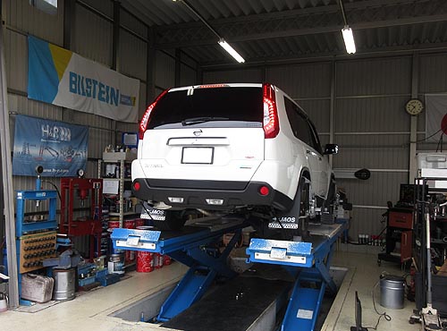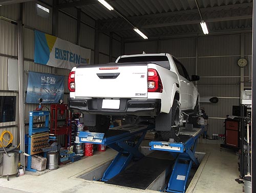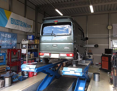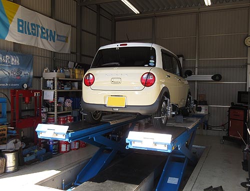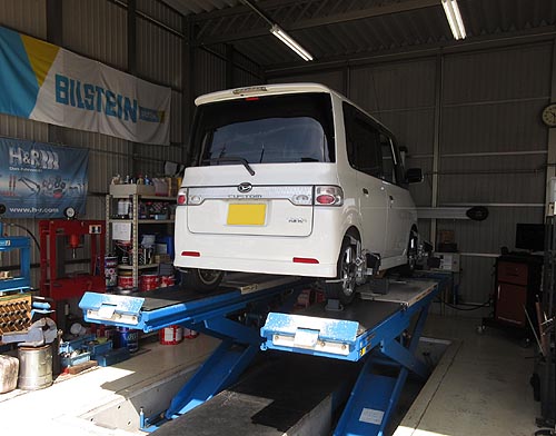 | 装着して、アライメントリフトの上で、 左右の出幅を調整して完成しました。 | |