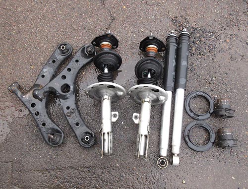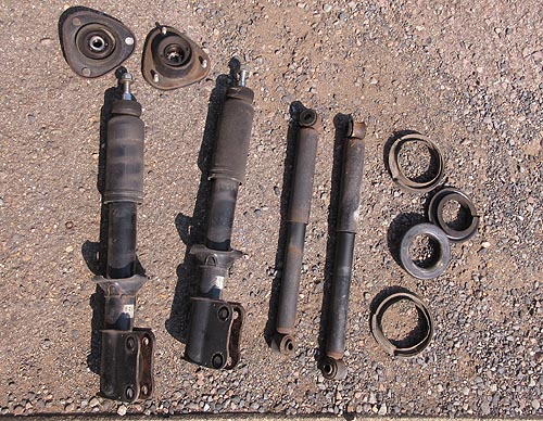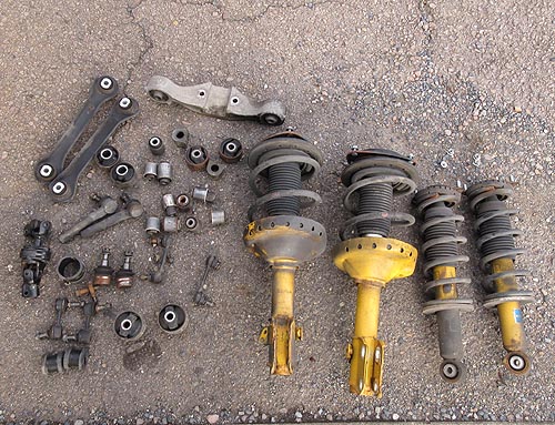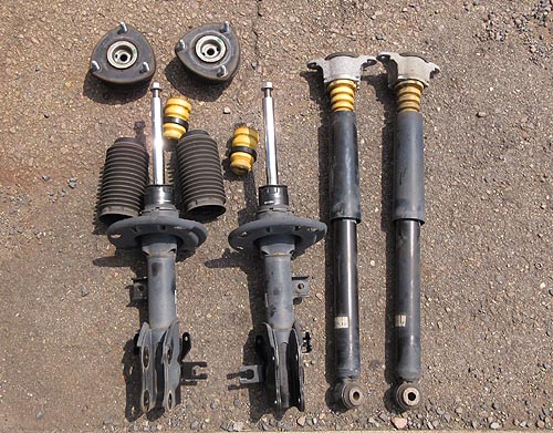 | 外したノーマルパーツ達です。 G'sだからシルバーカラーなんですね。 126000kmお疲れ様でした。 交換後のカッチリした乗り味が気持ち良いと思います。 | |