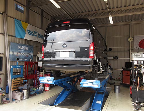 | トヨタ ハイエース GDH201 をアライメント調整しました。 ローダウンされての点検調整でした。 | |
