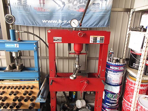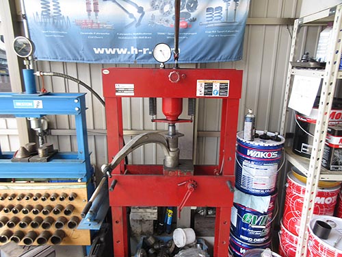 | フロントロアアームを外して プレスでブッシュを交換しています。 | |