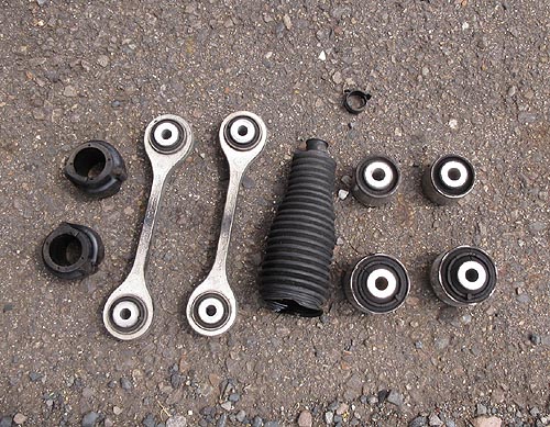 | 外したノーマルブッシュ達です。 10万キロお疲れ様でした。 走りの違いが分かると良いですね。 | |