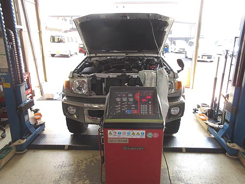 | スズキ ジムニー JB23W に エアコンガスリフレッシュを施工しました。 基準ガス充填量 400g に対して 回収量は 100gでした。 さすがに減っていましたね。 WAKOSパワーエアコンも添加して完成です。 | |
