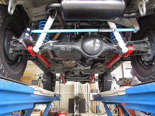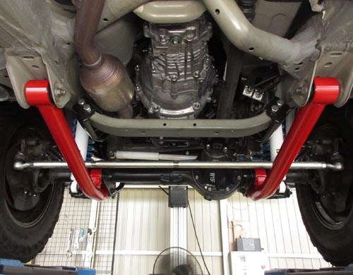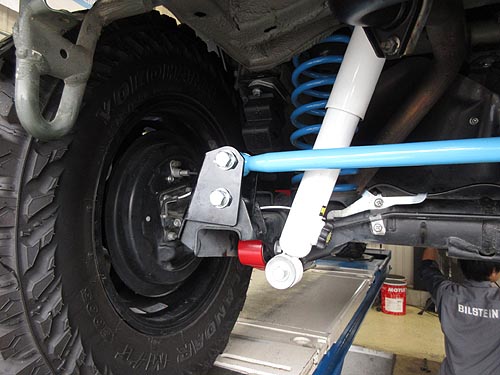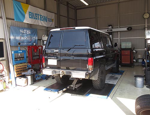 | トヨタ ランドクルーザープラド GDJ150W に イチネン調整式ラテラルロッドを装着しました。 リフアップしている車両になります。 | |