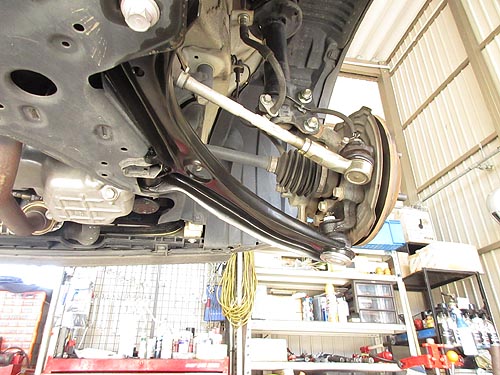 | アライメント調整は少し走られてからとしましたので 各部を1Gで締め付けして、とりあえず終了しました。 他の作業は複数のタイヤ交換を汗だくで行ないました。 |