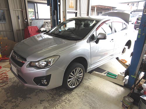 | 降雪地域に良く行かれる為か かなりサビによる固着が有り、ロアアームの脱着に 結構な時間がかかりましたが 無事にアライメントも調整して完成しました。 | |