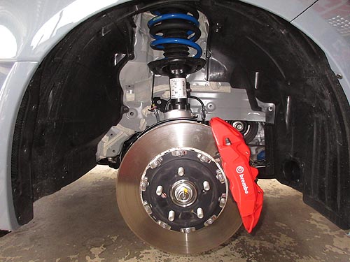 | フロント側ですが、こんなに大きなキャリパーでした。 6POT さすがSですね。 | |