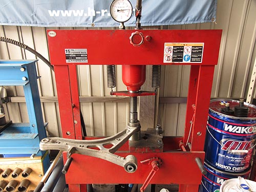 | 各アームを外して、 プレスでブッシュを交換していきます。 | |