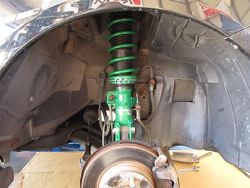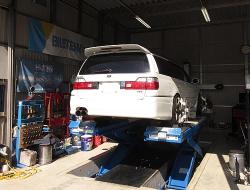 | アライメントも調整して完成しました。 今までもテインが付いていましたが、オイル漏れが有り 車検直前に交換しました。 なんと走行距離 45万キロです。 | |