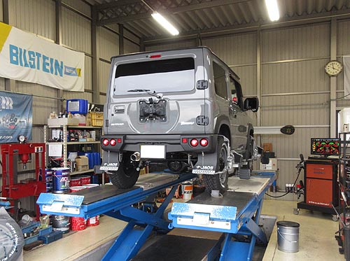 | スズキ ジムニー JB64W  新車 に ショーワガレージ SGアジャストコイル50 Xショックセットを 装着しました。 | |