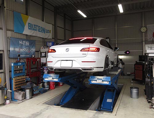 | 2025.10.22 長野県の遠方よりのお客様 VW アルテオン に ビルシュタイン B14車高調サスキットを装着しました。 アッパーマウント等もご用意しました。 | |