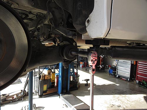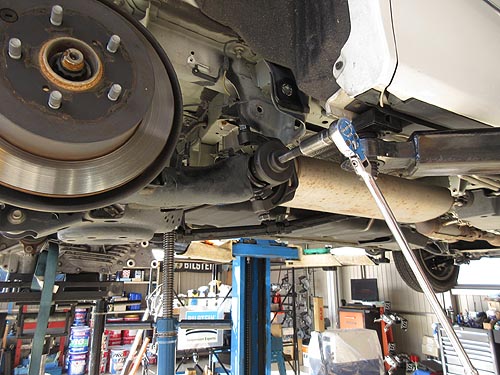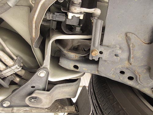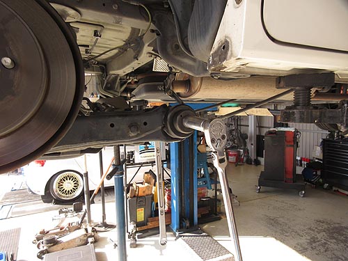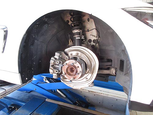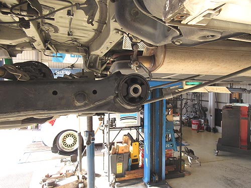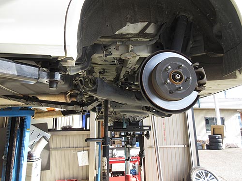 | リアアクスルブッシュの交換は ハイブリッドだから、まあまあ大変です。 |
