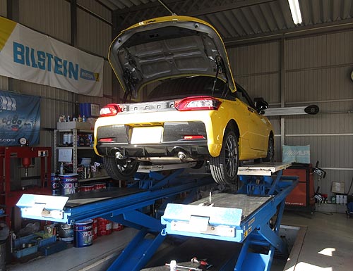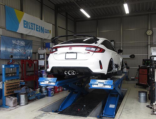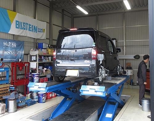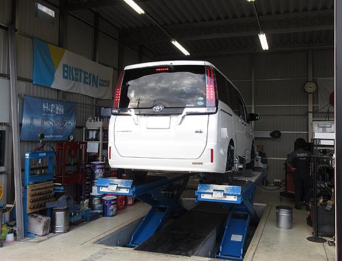 を 車高調の車高調整とアライメント調整を行ないました。 |