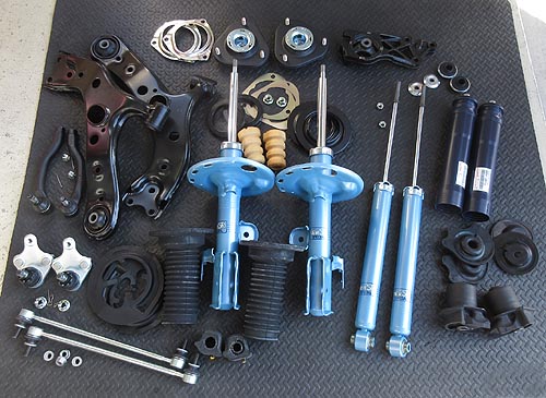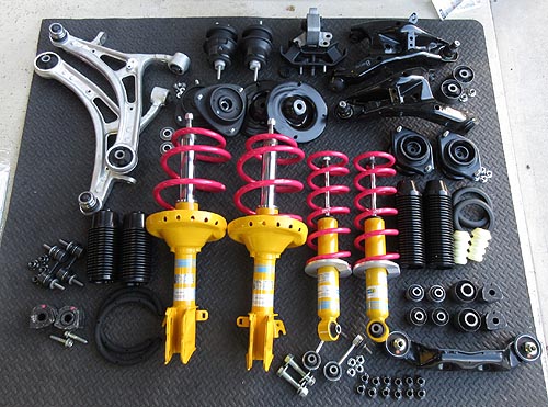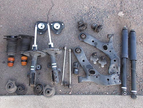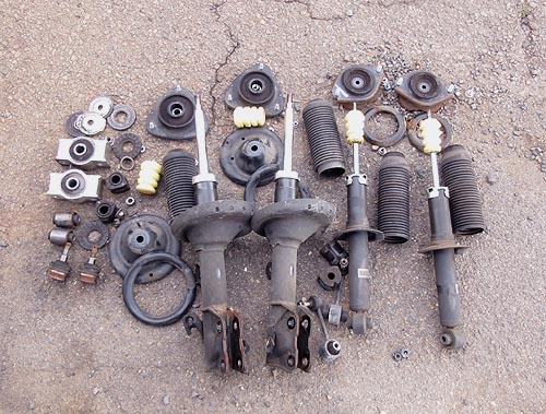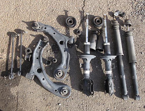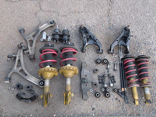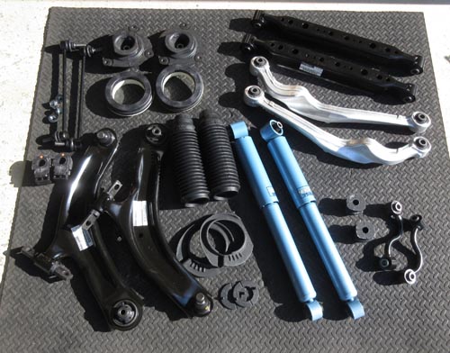 | サスペンション関係のパーツ ほぼ全てご用意しました。 ボルトナット類は写っていませんがご用意しています。 数日かけて作業を行ないます。 |