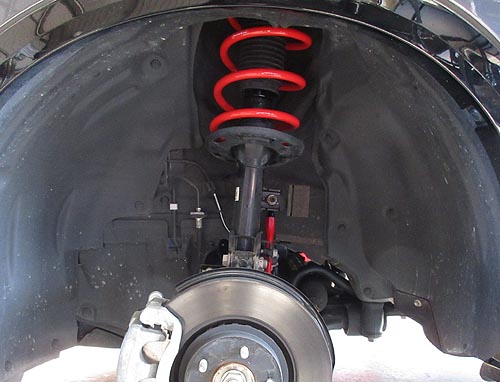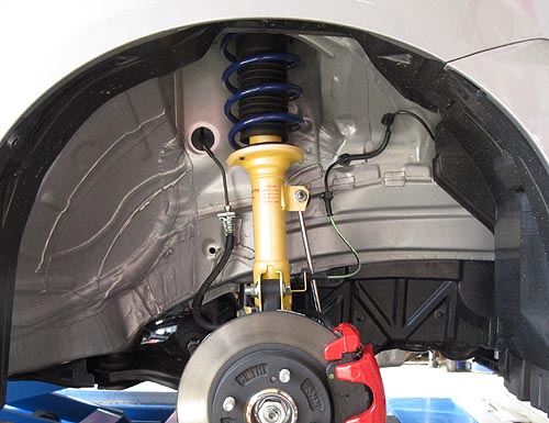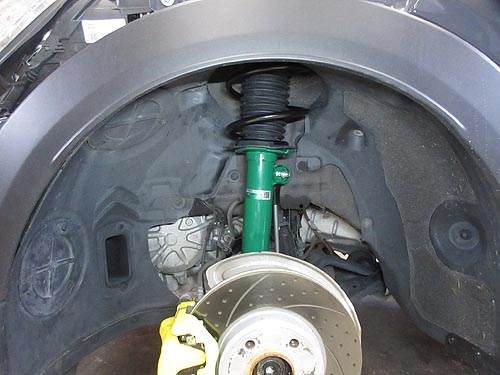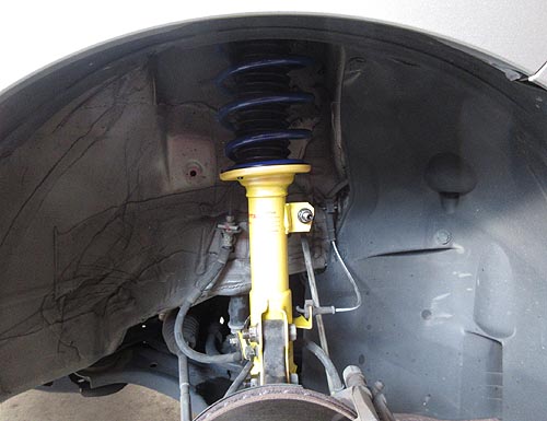 | 車高調を外した理由は、劣化して 乗り心地が悪化していたようです。 フロントはこんな感じに仕上がりました。 |