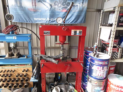 | 各アームを外して、 プレスでブッシュを交換していきます。 |