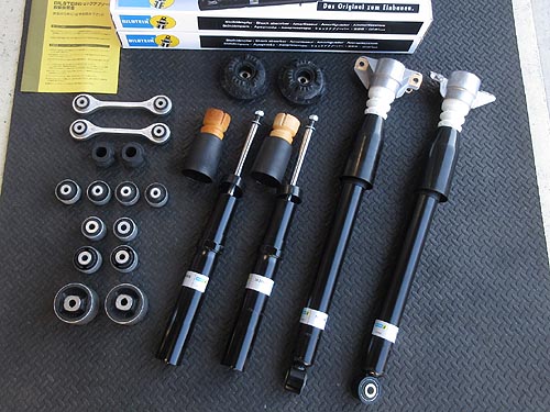 | 2025.6.22 京都からのお客様 BMW E87 130i に ビルシュタイン B4 ショック を装着しました。 前後のアッパーマウント類の消耗品から、 フロントロアアーム付近のブッシュ類もご用意しました。 |