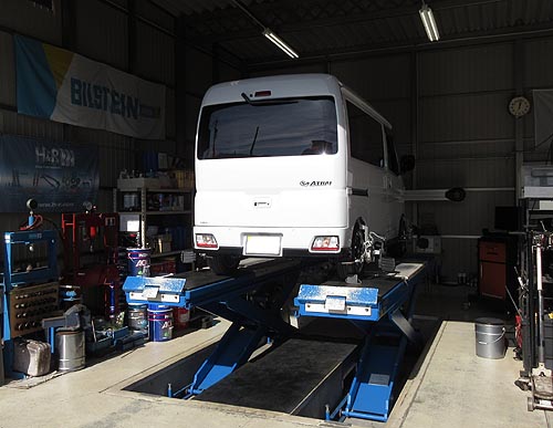 | 車検直前の整備のようでした。 さすがに、軽くトーだけ見ておきました。 |