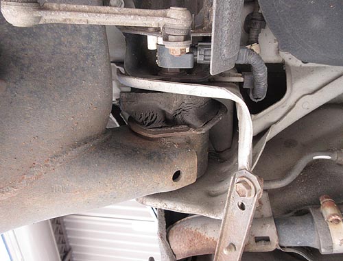 | リアアクスルブツシュの状態はこんなでした。 まあまあの劣化が見られます。 |