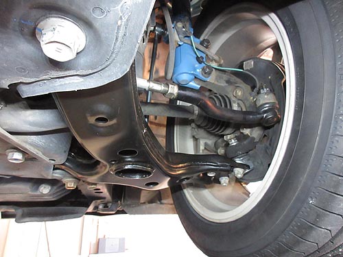 | フロントロアアームは、事前にメンバーに取り付けして 持ち上げて装着しています。 新品メンバーに変わったところです。 |