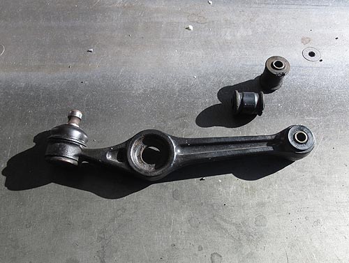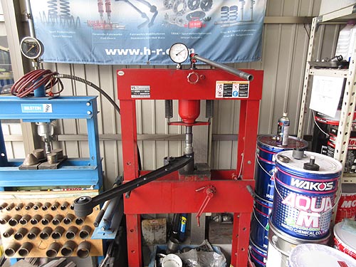 | フロントロアアームを外して プレスでブッシュを交換しています。 |
