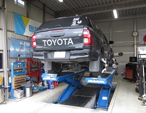 | 2025.12.3 トヨタ ハイラックス GUN125 を アライメント調整しました。 リフトアップされているおクルマでした。 |