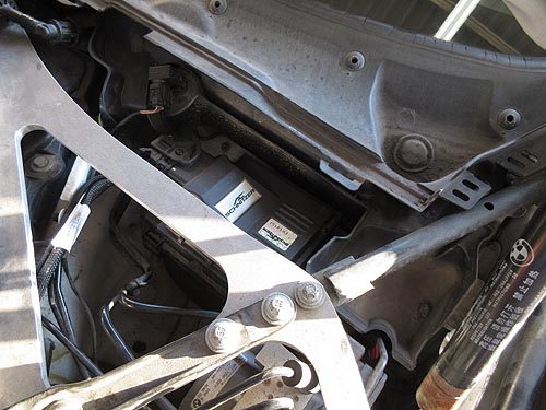 | 本体は、フロントガラスの左前 ヒューズボックスの上に配置しました。 510PSになるらしいです。 |