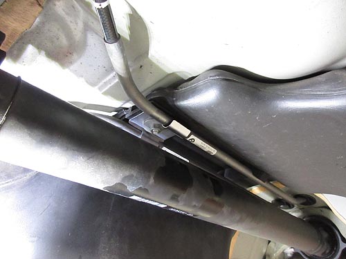 | 割りと狭いところに付いていて マフラーを外しての作業になります。 |