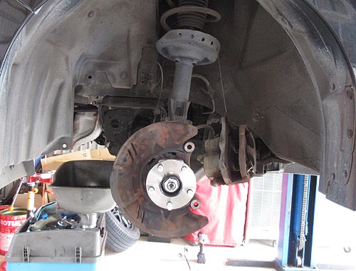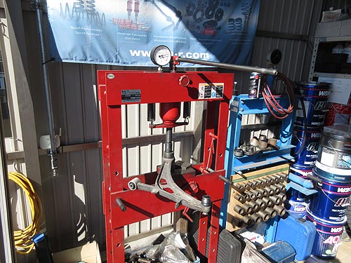 | ハブベアリングの交換にかなりの時間を費やして 画像を撮る余裕も無く、 こちらは手馴れたロアアームブッシュを交換しているところ |