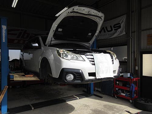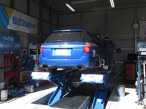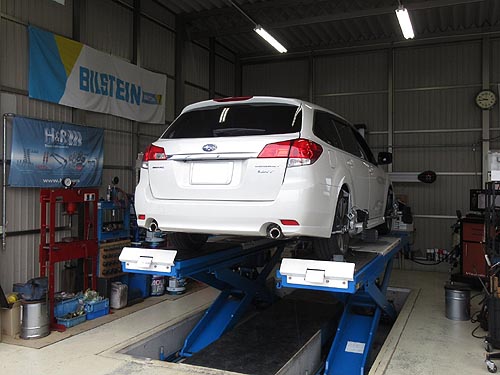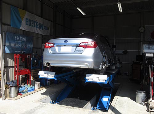 | スバル レガシィセダン BR9 をアライメント調整 ローダウンされたそうで、点検調整いたしました。 |
