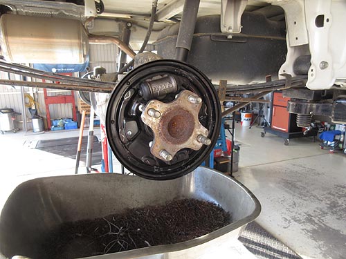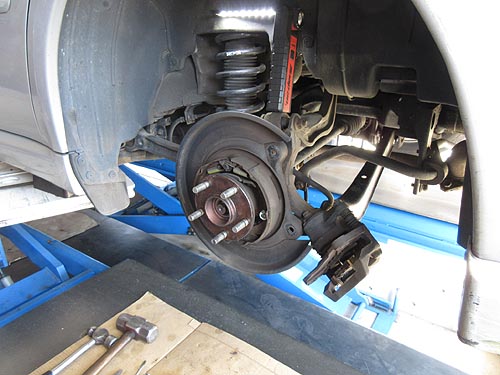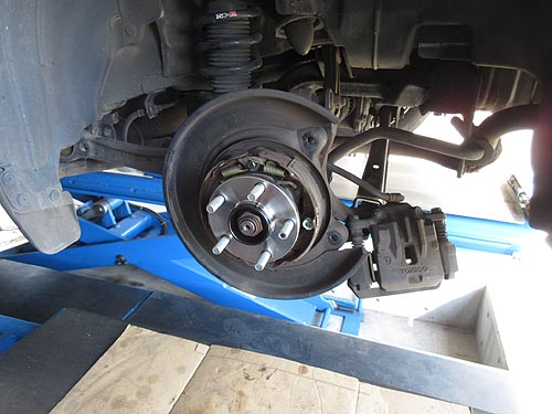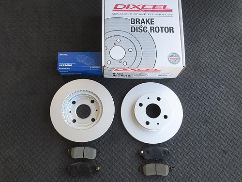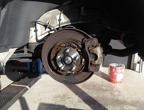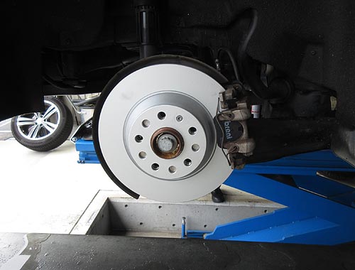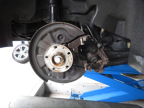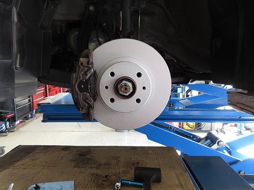 | ブレーキキャリパーを外して ブレーキローターを外して、当り面を清掃して 新品を組み立てしていきます。 |