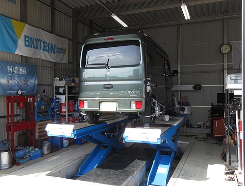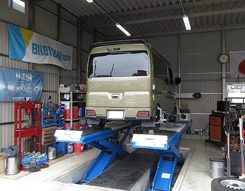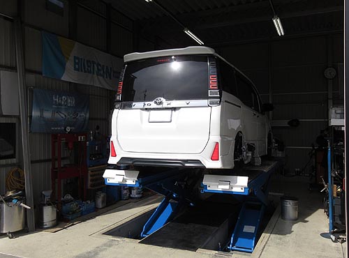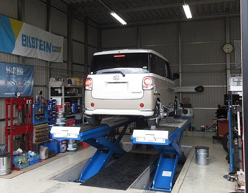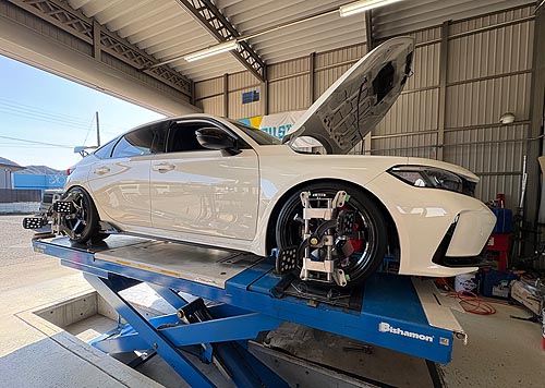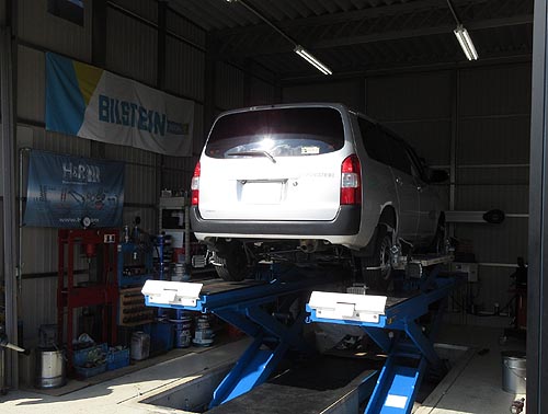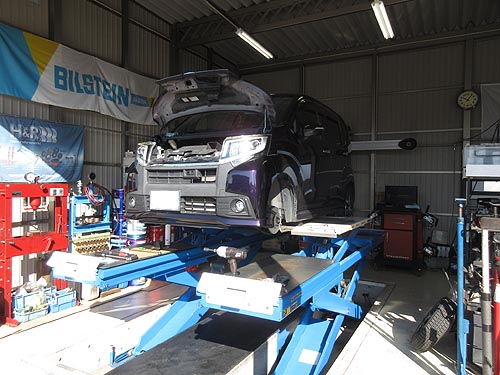 | 近日に少し大きなタイヤを履かれるそうで、 急遽キャンバーボルトも追加して アライメント調整を行ないました。 |