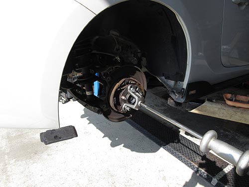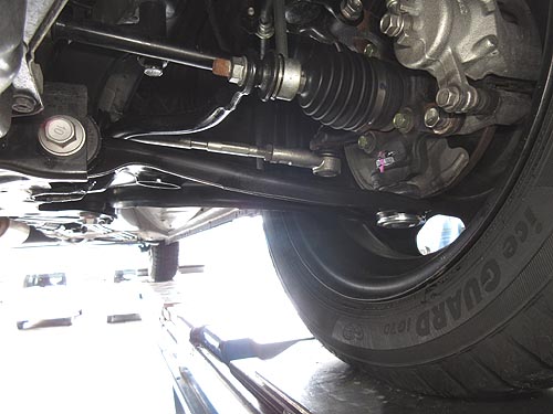| マルチリンクサスなので、大きく車高が変われば 1G締めは必須作業です。 特殊工具とアライメントリフトが有るから 厳密に 1G状態が再現できます。 |