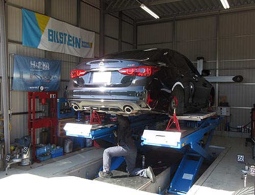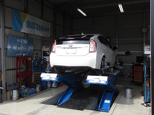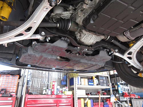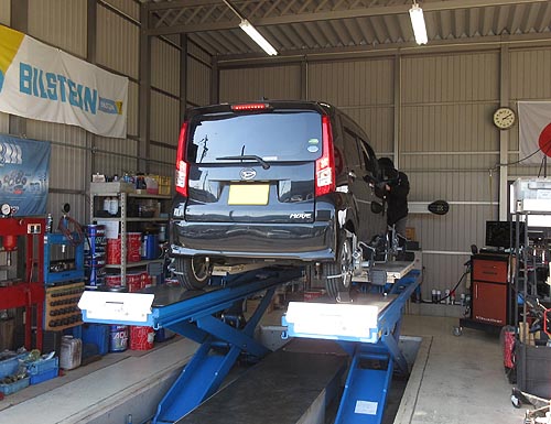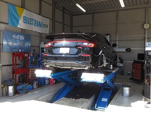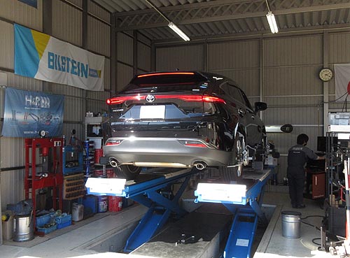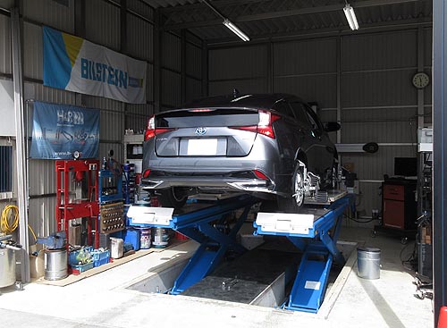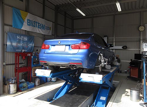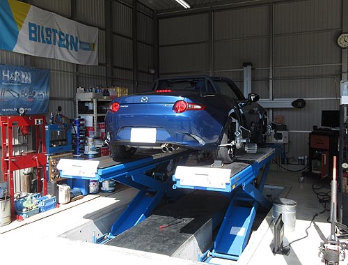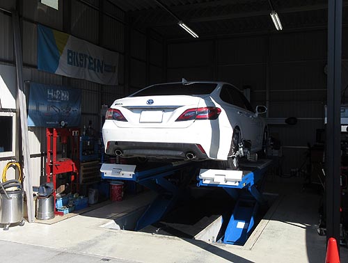 | 1G締め付けは、車高が低い分手間がかかります。 当社には、アライメント用のリフトが有るから良いものの 無かったら厳しい作業ですね。 |