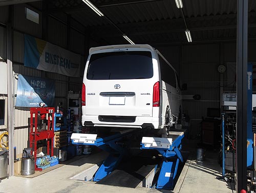 | トヨタ ハイエース KDH206 をアライメント調整 クルマが左に流れてしまうとの事でした。 きっちり修正して完了しました。 |