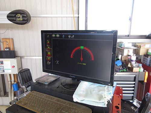 | さほど遠くない距離との事で、しばらく走ってから アライメント調整をする事にしました。 1Gでの締め付けを行なっています。 |
