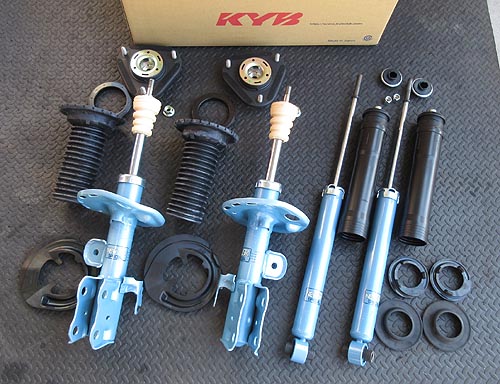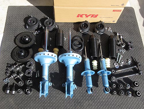 に KYBニューSRショックを装着しました。 消耗パーツは、高額なリアのアッパーアームを除き ほぼ全てをご用意しました。 |