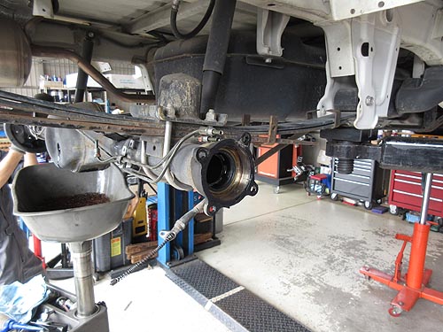 | マフラーを外して、デフを下げて リアクロスメンバーを外したところです。 |