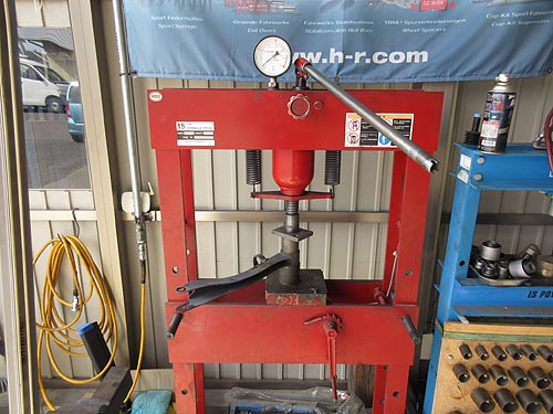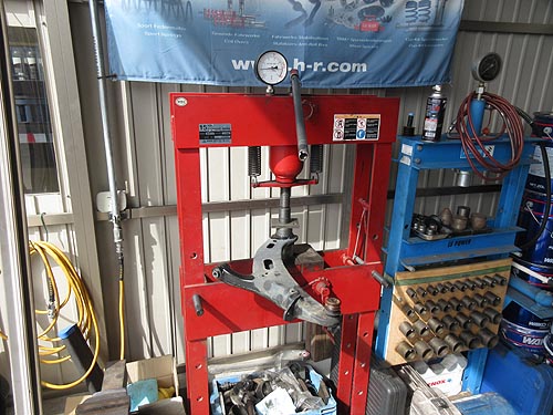| ロアアームブッシュも持ち込みして頂けましたので アームを外して、プレスでブッシュ交換しました。 |