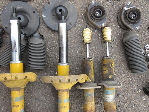 | 外したノーマルショック達です。 5万キロ程度のご使用でしたから。 バンプの状態も、それ程悪くないです。 いつ乗ってもKONIの乗り心地の良さは感心します。 |