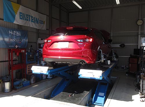 | 同時進行にて マツダ アクセラスポーツ BM5FSに ナイトスポーツ製 車高調サスキットを装着しました。 |