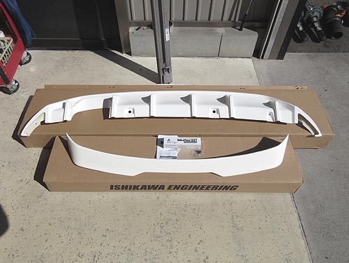 | VW ポロ AW GTI に イシカワエンジニアリングのルーフスポイラーと DTM風リアディフューザーを装着します。 |