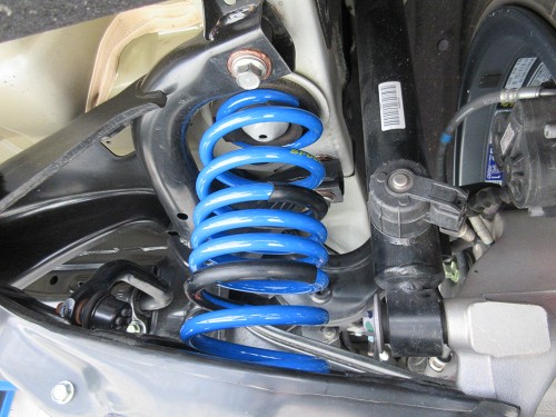 アライメントも調整して終了しました。 約30mmくらい落ちて、見た目もぐっと引き締まりました。 スポーツカーはこうでないといけませんね。 |
