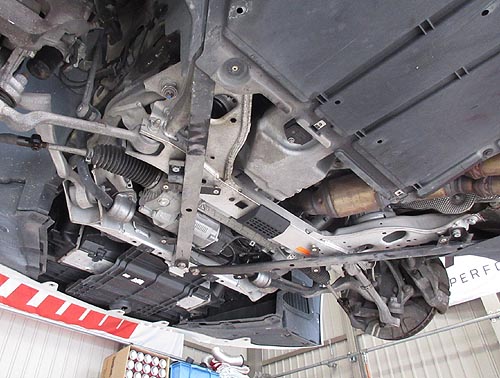 | BMWのフロントメンバーは、一般のクルマと違って クロスメンバーが斜めに止められているので リジカラを挿入するのは、なかなか難しいです。 |