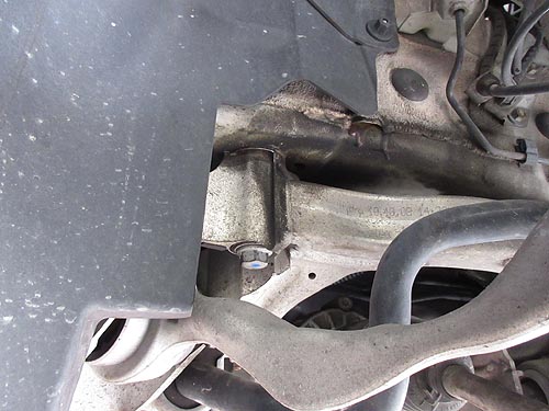| いつものようにロアアームを外して ブッシュをプレスで交換します。 たまには違う角度から撮影しました。 |