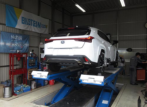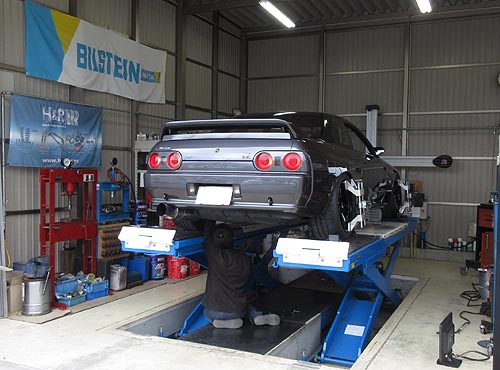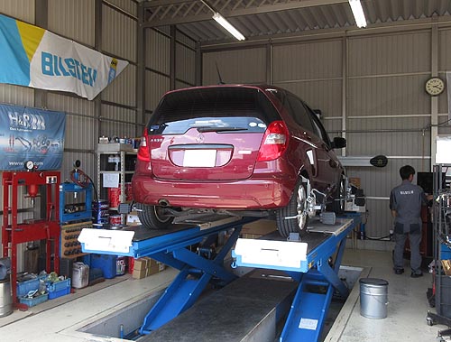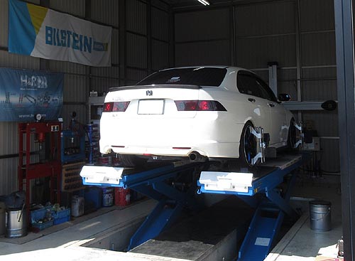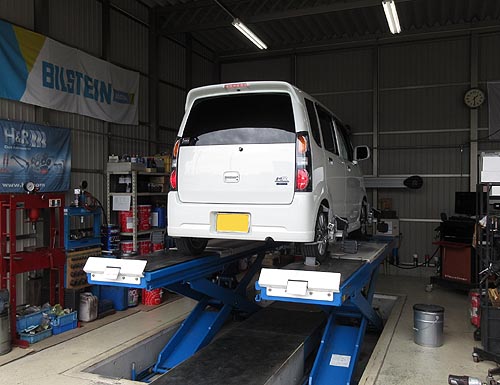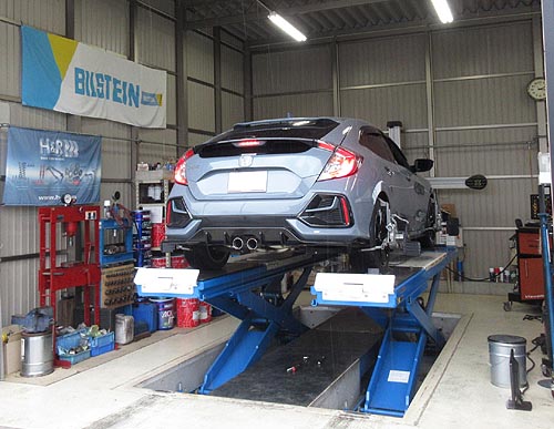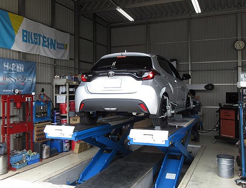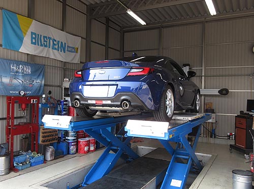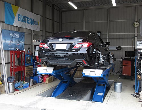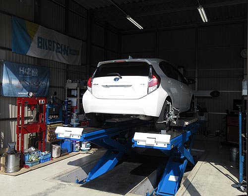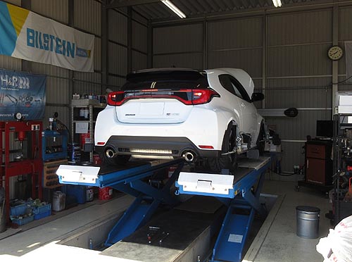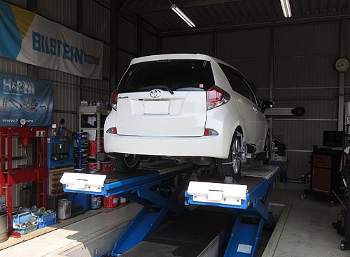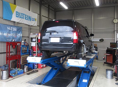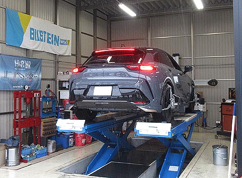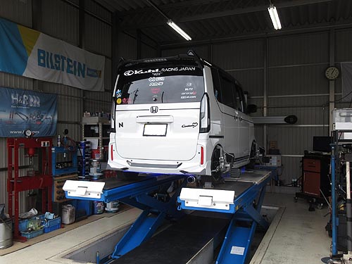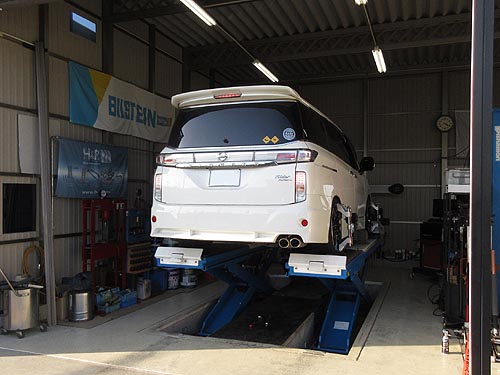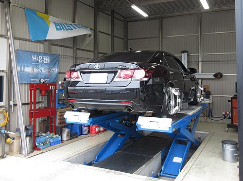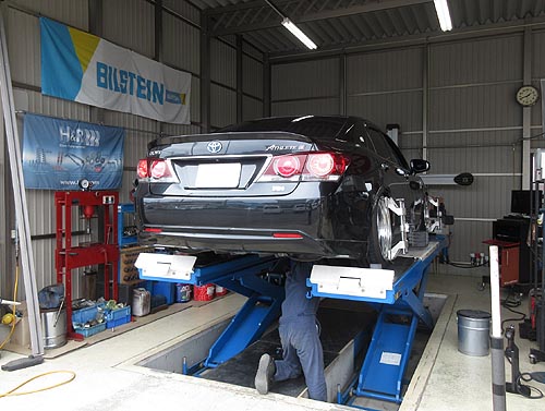 | 1G締め付けは、車高が低い分手間がかかります。 当社には、アライメント用のリフトが有るから良いものの 無かったら厳しい作業ですね。 |