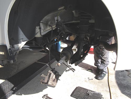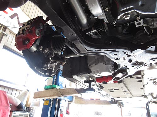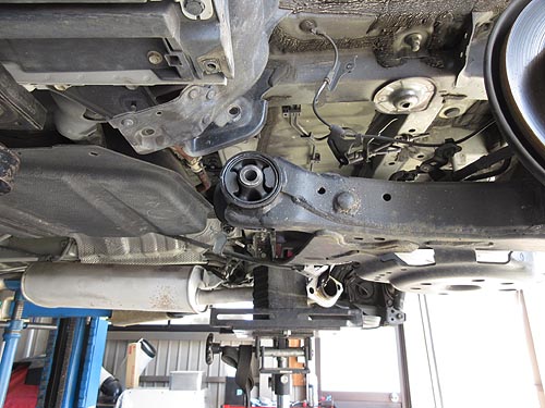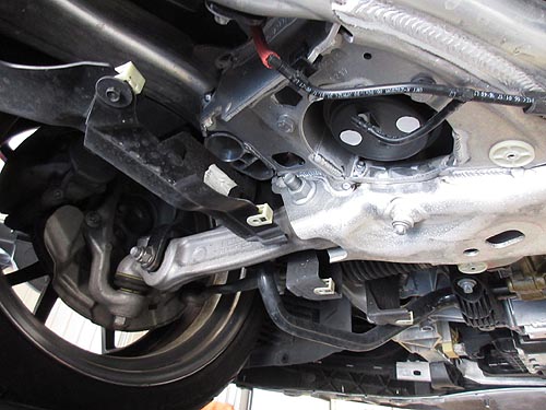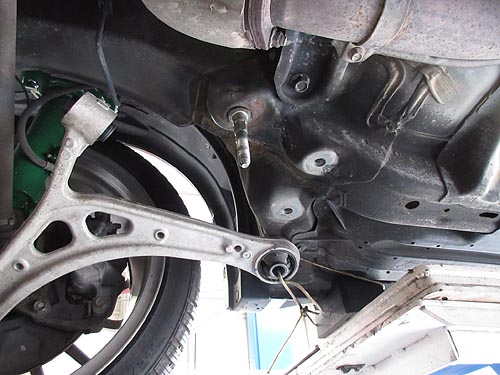 | アンダーカバーを外して フロントロアアームの付け根に触る事ができます。 |