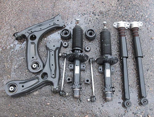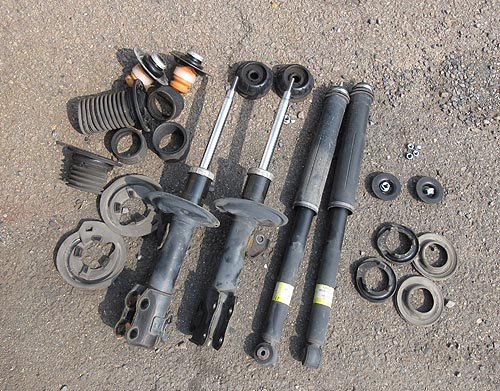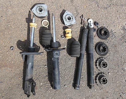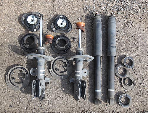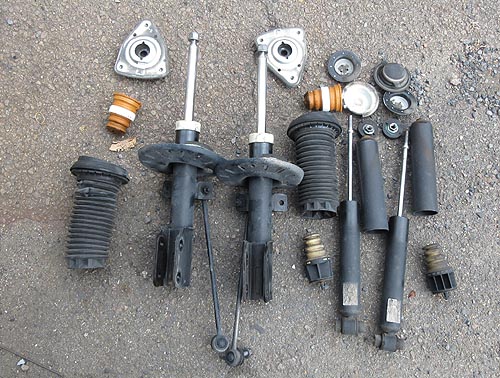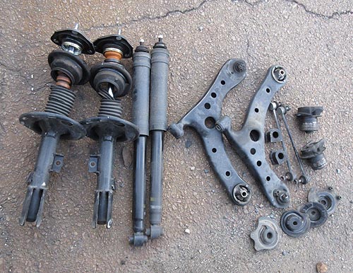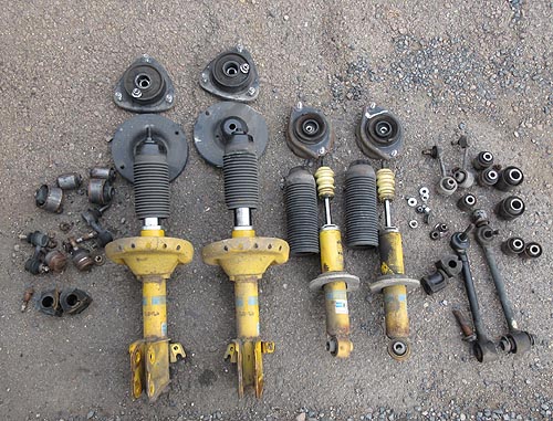 | 外したノーマルパーツ達です。 95000km お疲れ様でした。 カッチリして良い感じの足になりました。 |