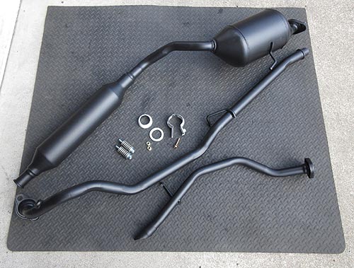 | 新品は、ピカピカです。 ブレーキホースをつないで、エア抜きを行い マフラーを取り付けします。 |