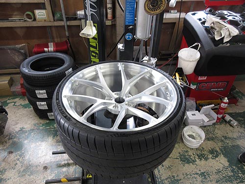 | タイヤを交換するにも、かなり神経を使って 慎重に作業を行ないました。 なので画像撮れず。 ミシュランは、ビートが簡単に裏返ってしまうから難しい。 アライメントも調整して完成しました。 |